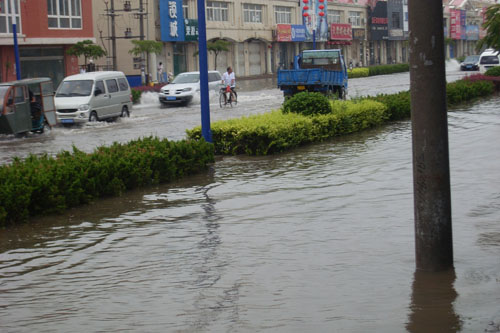 7月15日凌晨3点,唐海区域内普降大暴雨,截止上午8点,唐海镇降雨量为152.3mm,致使部分房屋、农田受灾,导致.马路.小区无法正常行驶 给广大居民群众生产生活造成了很大困难