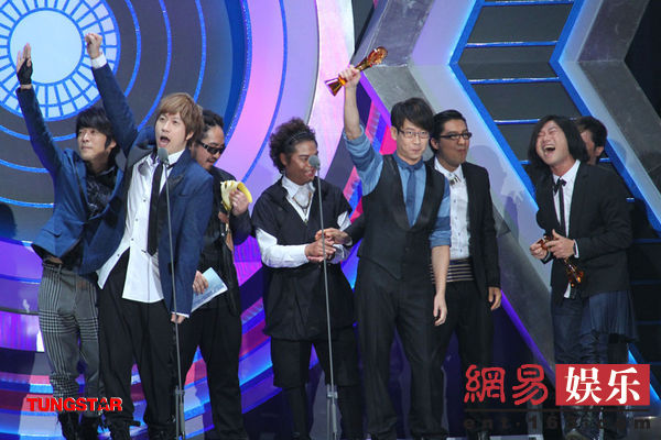 如果S.H.E算是台湾第一女团的话,那么第一男团一定非五月天莫属。五月天除了本届收获到七个奖杯之外,也奉献出一段精彩表演,演唱了《2012》《诺亚方舟》两首新专辑中的热门歌曲。