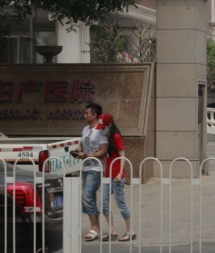 陈龙牵手章龄之去妇产医院。