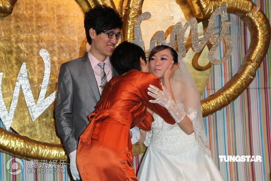 梁咏琪裙装帮歌迷证婚 露面即抢新人风头