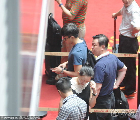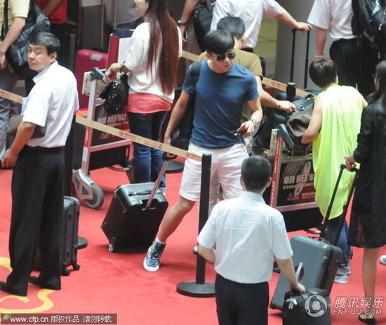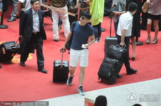 邓超快速走进安检区