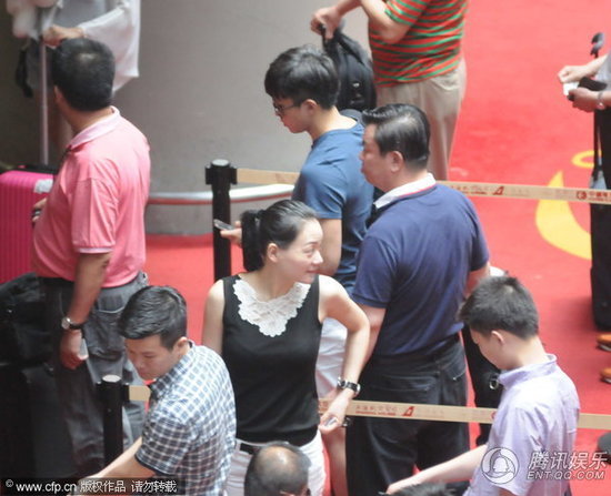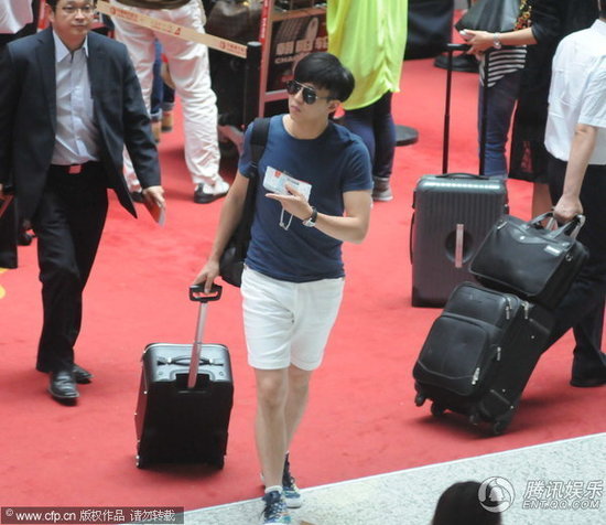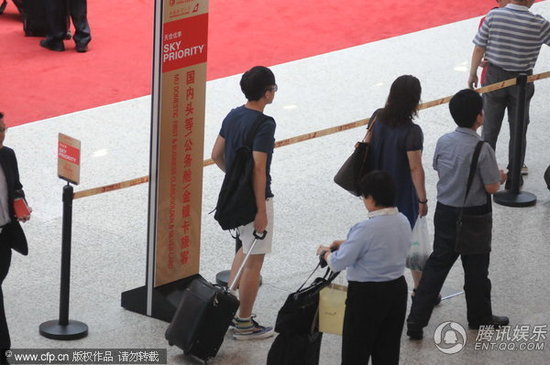 腾讯娱乐2012年8月3日上海讯近日,邓超独自一人出现在上海虹桥机场,当天邓超一身运动装扮拉着行李箱出现在办票柜台,在等候的时候邓超还不忘拿出手机发着短信似乎在向老婆孙俪汇报行踪。