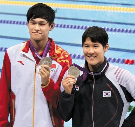 中新网8月21日电据韩国《朝鲜日报》21日报道,伦敦奥运会举行的男子200米自由泳决赛中,中国选手孙杨与韩国选手朴泰桓并列第二。但报道指,朴泰恒当时获得的银牌系赝品。由于国际奥委会感觉有愧,因此在颁奖仪式升国旗时,韩国国旗在中国国旗之上。