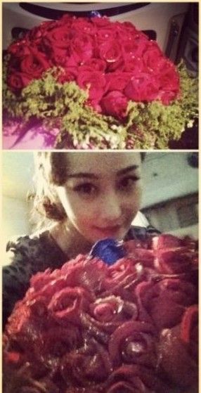 张馨予晒七夕节收到的玫瑰。