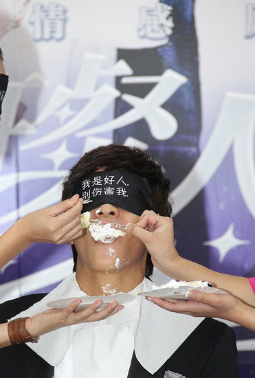 在吃蛋糕的环节,何润东更显紧张。虽说他从未享受过这种待遇,但当被李沁和阚清子两人蒙着眼睛喂了一脸的蛋糕时,何润东就很难享受了,“这实在太让人紧张了,喂得我满脸都是啊!等下次她们过生日时我一定要报仇!”