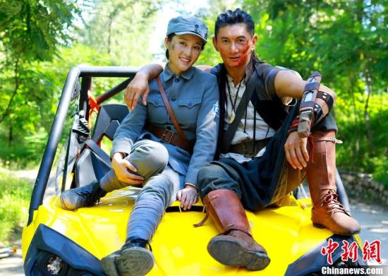 2012年9月4日,北京,电视剧《向着胜利前进》探班。