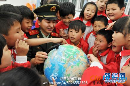 21日,河北边防总队曹妃甸边防检查站官兵走进辖区小学开展了以“我们一起保护地球”为主题的活动,带领孩子们学习了地球构造知识,了解了乱扔废电池的危害,引导孩子们增强节约资源、保护环境的意识。(李梦娇)
