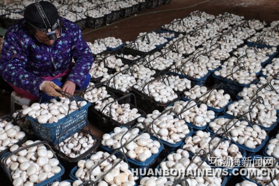 日前,记者在曹妃甸区八农场成盛食用菌种植园区看到,一座座智能恒温空调菌棚规整气派,一篮篮刚刚采摘的双孢菇正在装车,将新鲜供应北京、天津等地的节期市场。