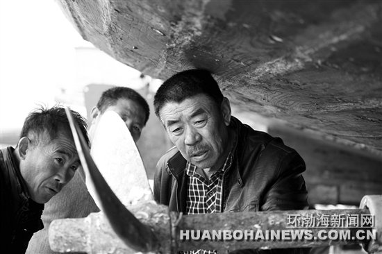 曹妃甸地区火热的开发建设给古老的小渔村吹来了新鲜的海风。老杨的船舶修造厂由起初只维修小渔船,到排造大型渔船、运输船,如今年修造规模可达三百只。为了抢占时代商机、支持曹妃甸建设,老杨根据曹妃甸的海上地形和水深情况,自己绘图排造了载重5000吨、长73米的平板驳船,目前正用于曹妃甸工业区的水上施工运输。