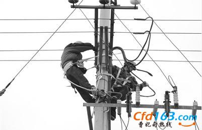 近日来,气温骤降,恶劣的天气给现场的施工带来了不小的影响。一阵寒风袭来,记者不由自主打了个哆嗦。而此时,几名施工人员却正在顶着寒风加紧作业。“一、二、三!用力拉!”两名电工一边喊着号子,一边用力拉着绳子,给在电杆上作业的同事传送着设备。